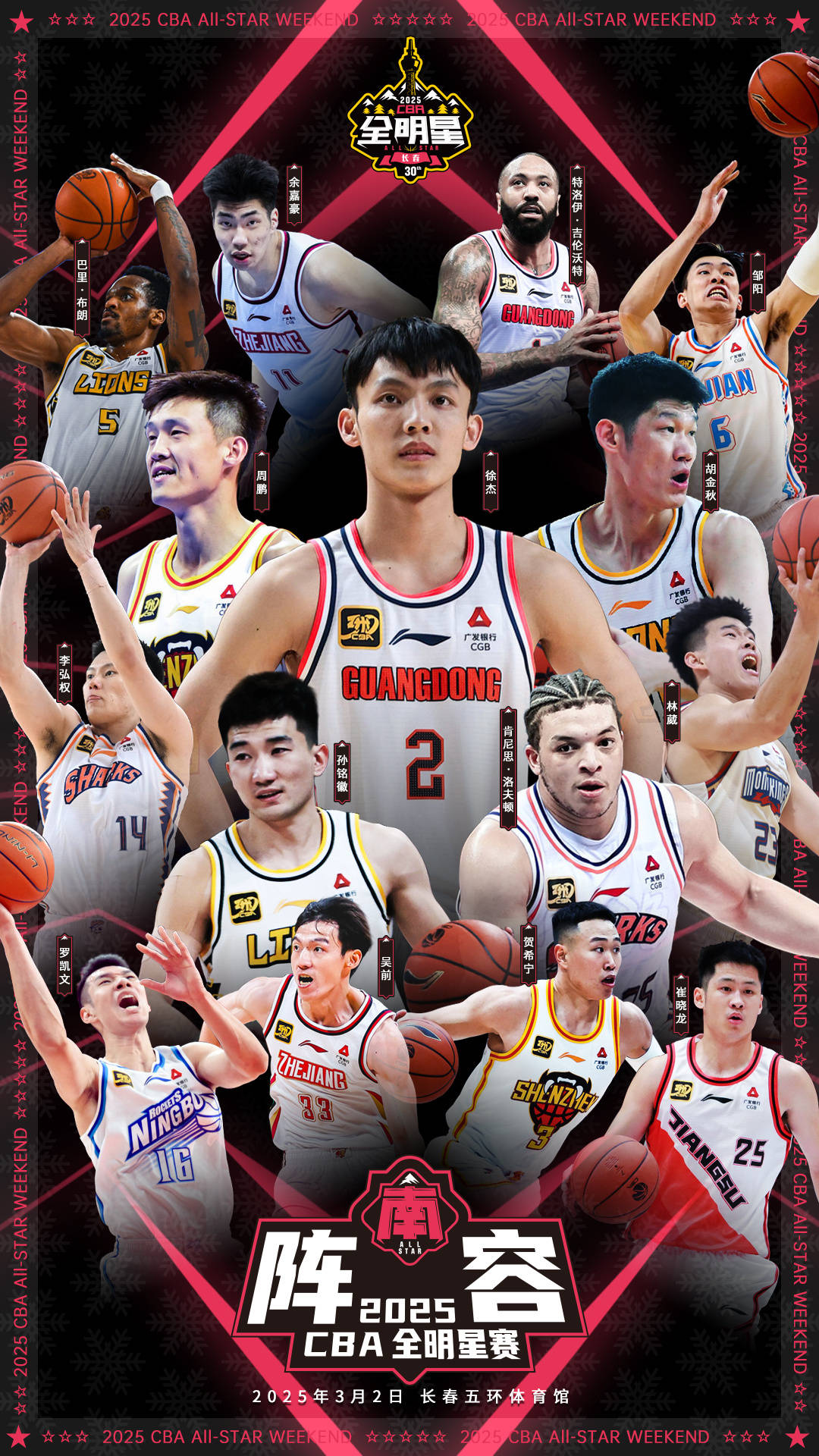 2025年CBA全明星赛将于3月1日-2日在长春五环体育馆举行。