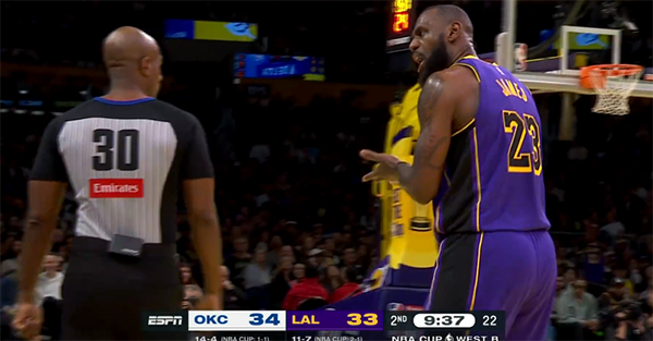 江城足球网讯北京时间11月30日,NBA杯小组赛湖人主场93-101不敌雷霆,詹姆斯全场13投5中、三分4中0拿到12分8篮板6助攻5失误,三次运球走步违例,末节关键时刻踩线失误后怒砸篮球泄愤;湖人输球后小组赛战绩2胜2负,无缘小组第一,无缘小组第一,确定出局无缘晋级八强,无缘卫冕杯赛冠军。
