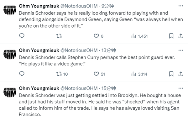 施罗德还表示,他很高兴有机会为勇士效力,旧金山这座城市让他想起了欧洲。