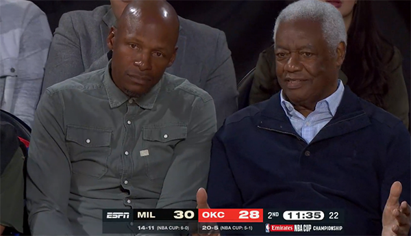 第二节,利拉德先是单核带队与雷霆僵持,字母哥登场后两队继续打得十分胶着,半场打完雄鹿51-50反超1分;这一节字母哥6投4中拿到8分,大秀金鸡独立式后仰中投,背打强攻得分以及空切双双暴扣;值得一提的是,NBA两大名宿雷-阿伦和罗伯特森都来到现场观战。
