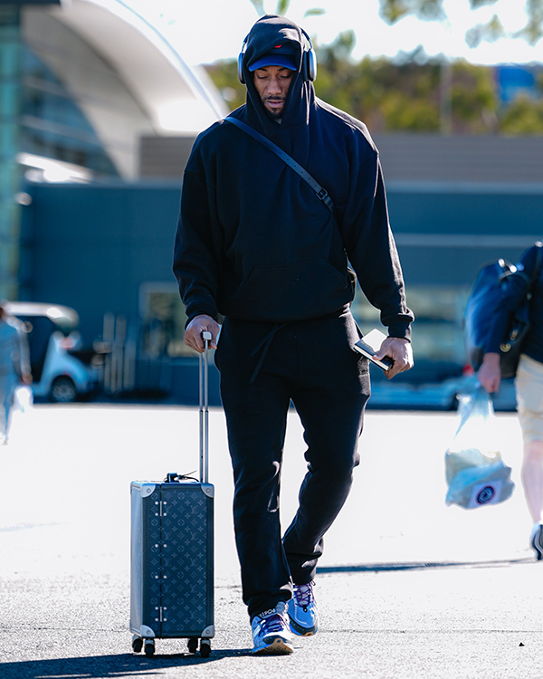 小卡拖着行李、拿着小本本,一副十分严肃的样子;据泰伦-卢透露,小卡已经全程参加了球队的5V对抗训练,小卡随队出征三连客但期间不会复出。