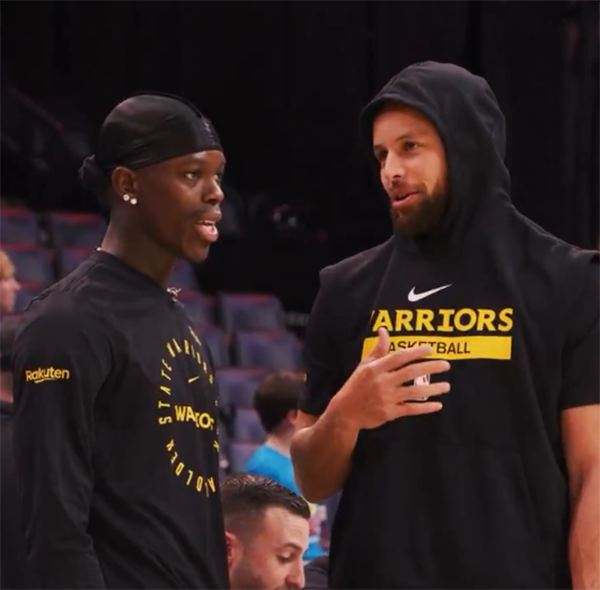 赛前施罗德和库里热切交流,两人聊得很带劲。