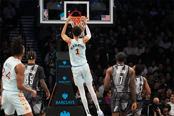 三节打完马刺74-62领先篮网12分;末节文班回到场上,又送出不讲理的钉板大帽,面对篮网的反扑,马刺一直占据上风,文班突破飞身暴扣,再次送出大帽;4分01秒克洛尼不满判罚怒喷裁判,直接1T被驱逐离场;比赛继续,文班继续送帽,最终马刺96-87拿下胜利