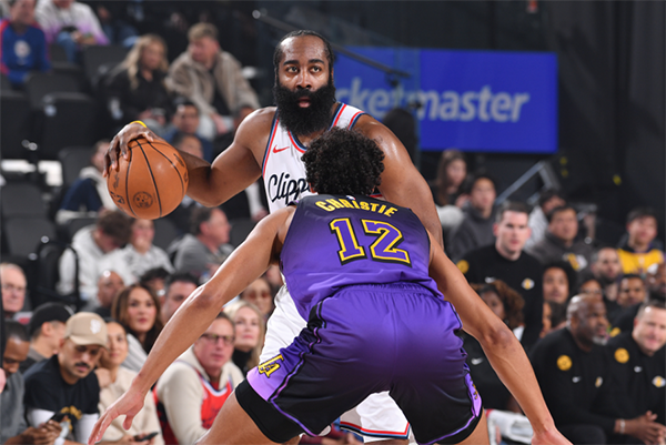 江城足球网讯 北京时间1月20日,NBA常规赛迎来洛城德比,快船主场击败湖人,小卡出战24分钟,13投9中、三分3中1拿到19分4助攻1篮板,在场正负值高达+20;哈登19投7中、三分9中4拿到21分12助攻,快船双巨率队赢球还都迎来里程碑。
