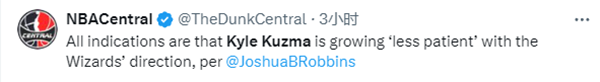 江城足球网讯 北京时间1月27日,湖人旧将库兹马疑似与奇才管理层不和,据奇才队记Josh Robbins报道,种种的迹象表明,库兹马对奇才的建队方向感到越来越“不耐烦”;库兹马公开喊话:我不再迎合球队,我要做自己。