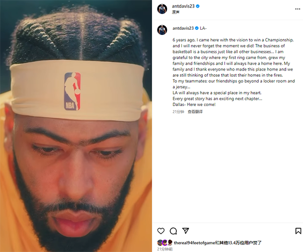 江城足球网讯 北京时间2月4日,在湖人、独行侠和爵士三方大交易之后,安东尼-戴维斯首次发声,深情告别洛杉矶,却只字不提湖人,浓眉感谢洛杉矶以及致敬队友,却只字不提湖人。