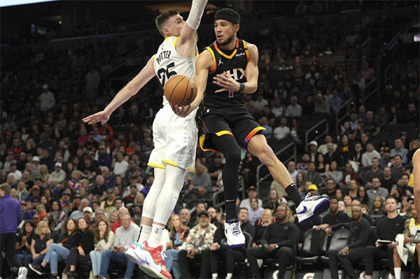 下半场,太阳第三节与爵士疯狂对攻,单节40-35占上风,这一节布克贡献10分,阿伦单节又命中2记三分球;末节太阳领先到11分后进攻下滑,爵士一波反击攻势扳平比分并且趁势扭转局面,比赛还剩4.5秒,太阳116-120落后4分。