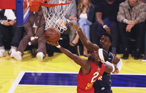 暂停回来,肯尼队接连打铁,特雷-杨轻松上篮,约基奇助攻文班单臂劈扣,文班再次劈扣,坎宁安暴扣为球队止血,关键时刻,亚历山大轰进三分以及暴扣杀死比赛,最终国际队41-32击败年轻的明星队。