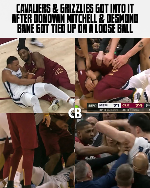 江城足球网讯北京时间2月24日,NBA常规赛东西部强强对决,骑士主场大战灰熊,下半场爆发火爆冲突,米切尔骑着贝恩激烈争夺地板球引冲突,莫兰特和TT加入战局,最终四人吃到技术犯规。