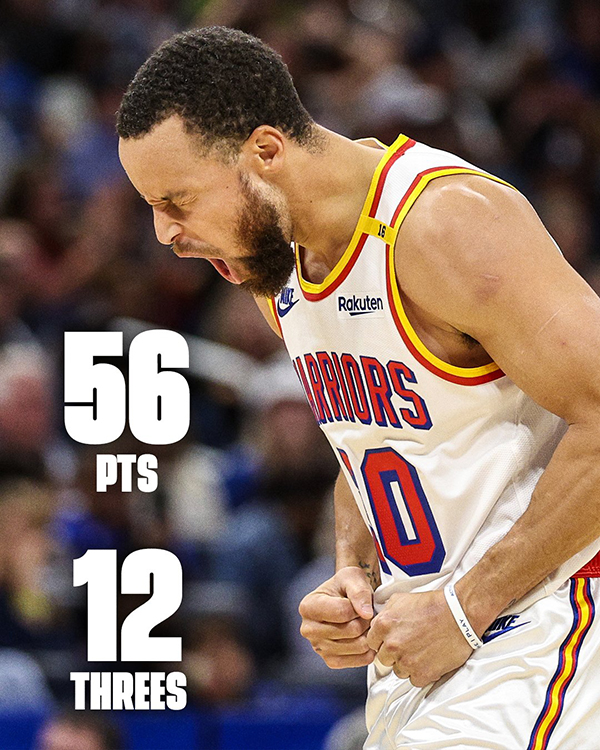 8、库里生涯第26次单场至少命中10记三分,刷新历史第一纪录