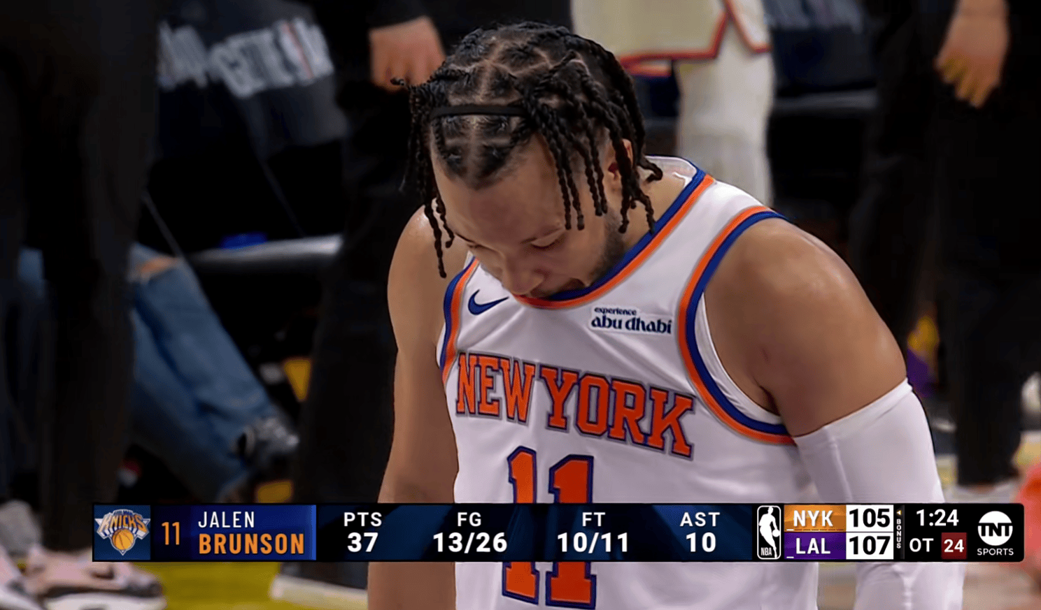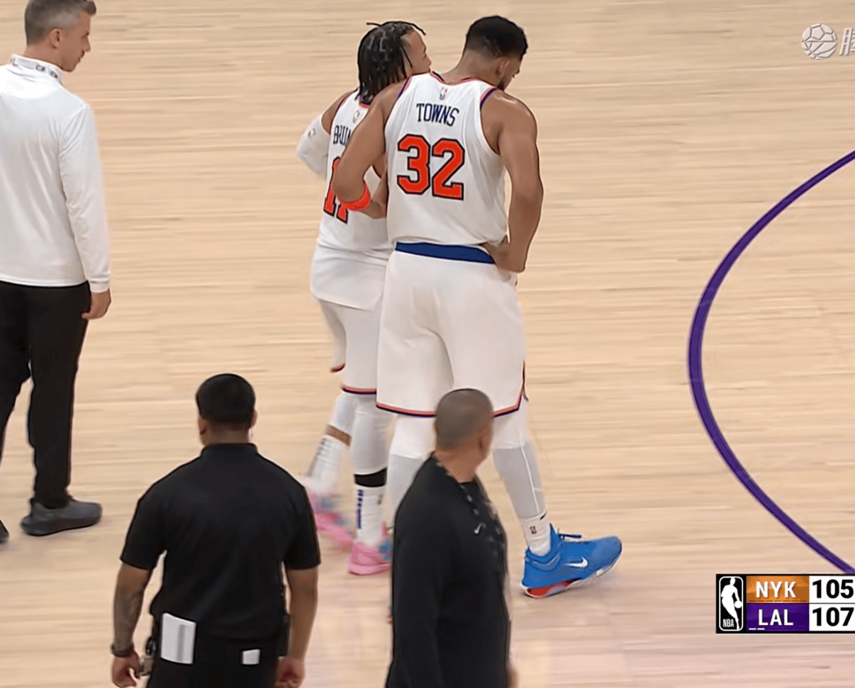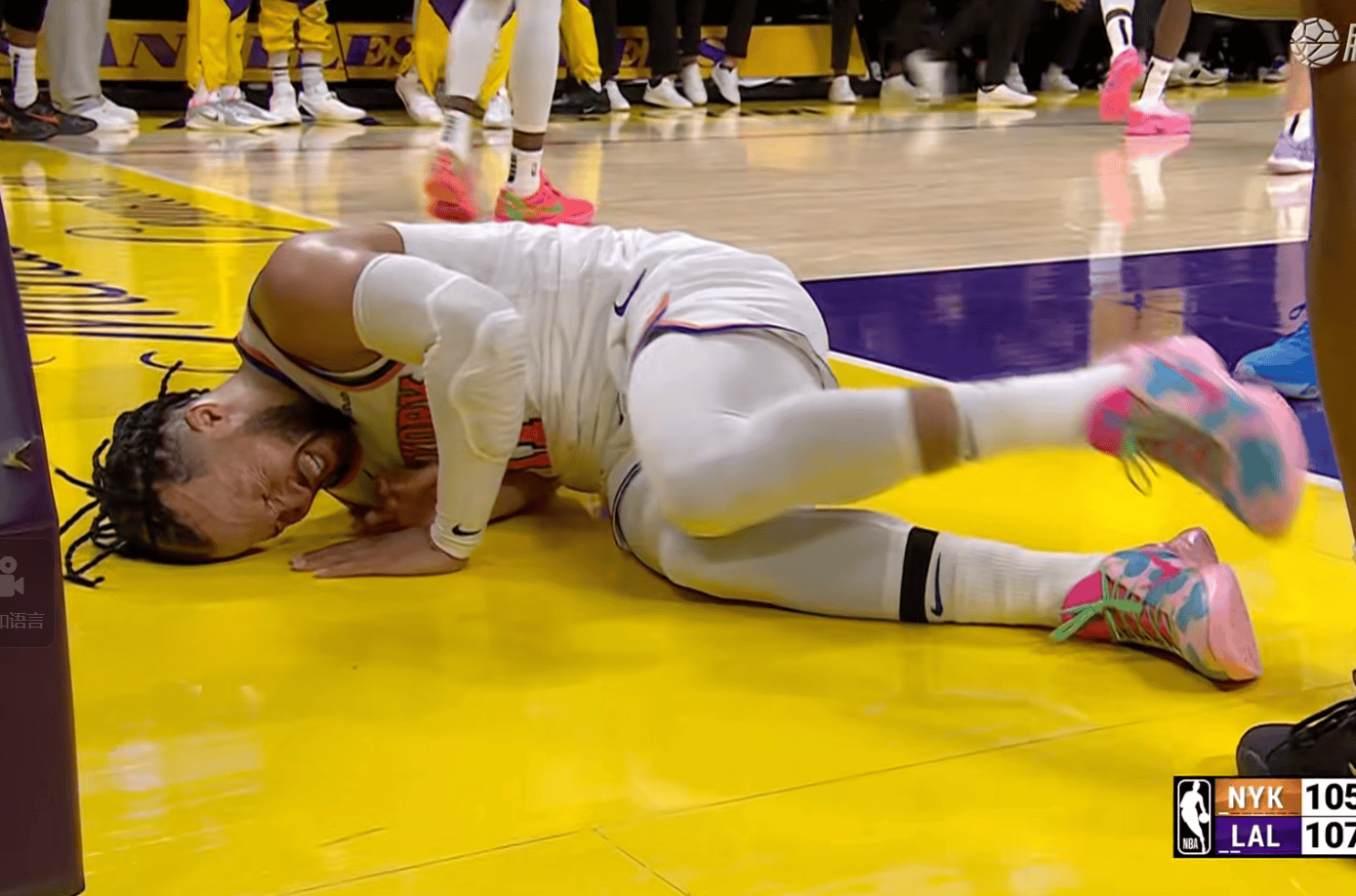 湖人对阵尼克斯这场比赛再次出现了严重伤病,尼克斯不光是输球了,而且布伦森在关键时刻,脚踝超过90度扭曲痛苦受伤退场。虽然他坚持完成了两个罚球,帮助球队追到了107平,但是他已经无法再坚持比赛了。