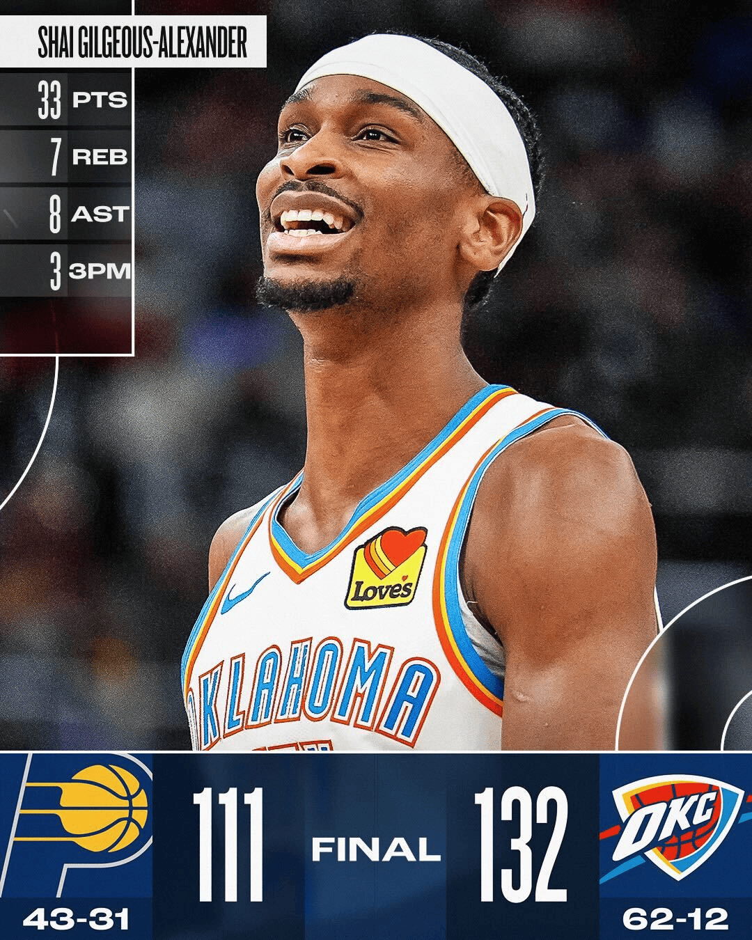 亚历山大33分7篮板8助攻,雷霆继续高歌猛进,豪取9连胜后已经达到62胜12负,他们领先第2的火箭多达14个胜场。对于雷霆来说,保持健康是非常重要的。