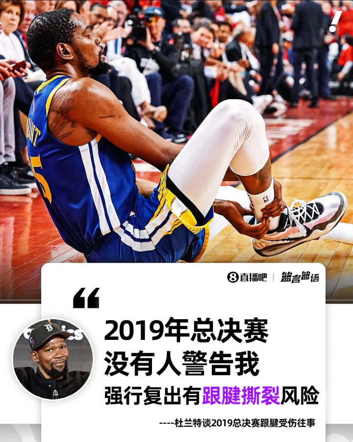 杜兰特:2019年总决赛 没有人警告过我 强行复出有跟腱撕裂的风险