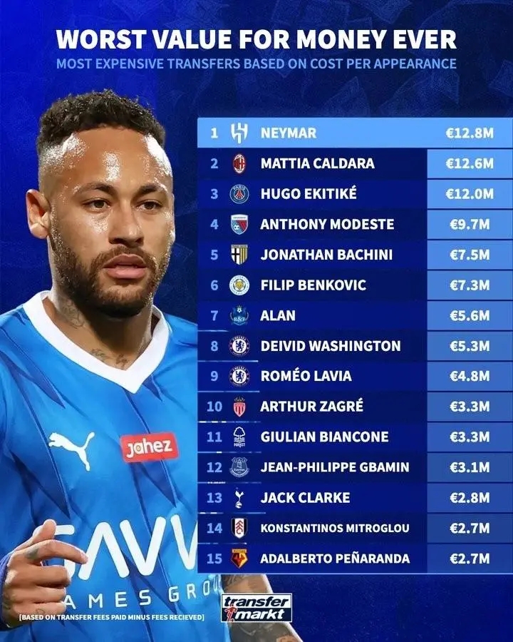8-戴维德-华盛顿(切尔西) - 530万欧元/场