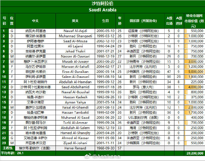沙特队方面,中场核心卡诺因伤缺阵,多名新人在列。