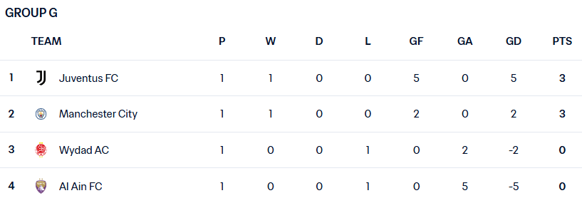 G组:曼城2-0维达德、艾因0-5尤文图斯