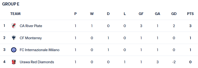 E组:河床3-1浦和红钻、蒙特雷1-1国际米兰