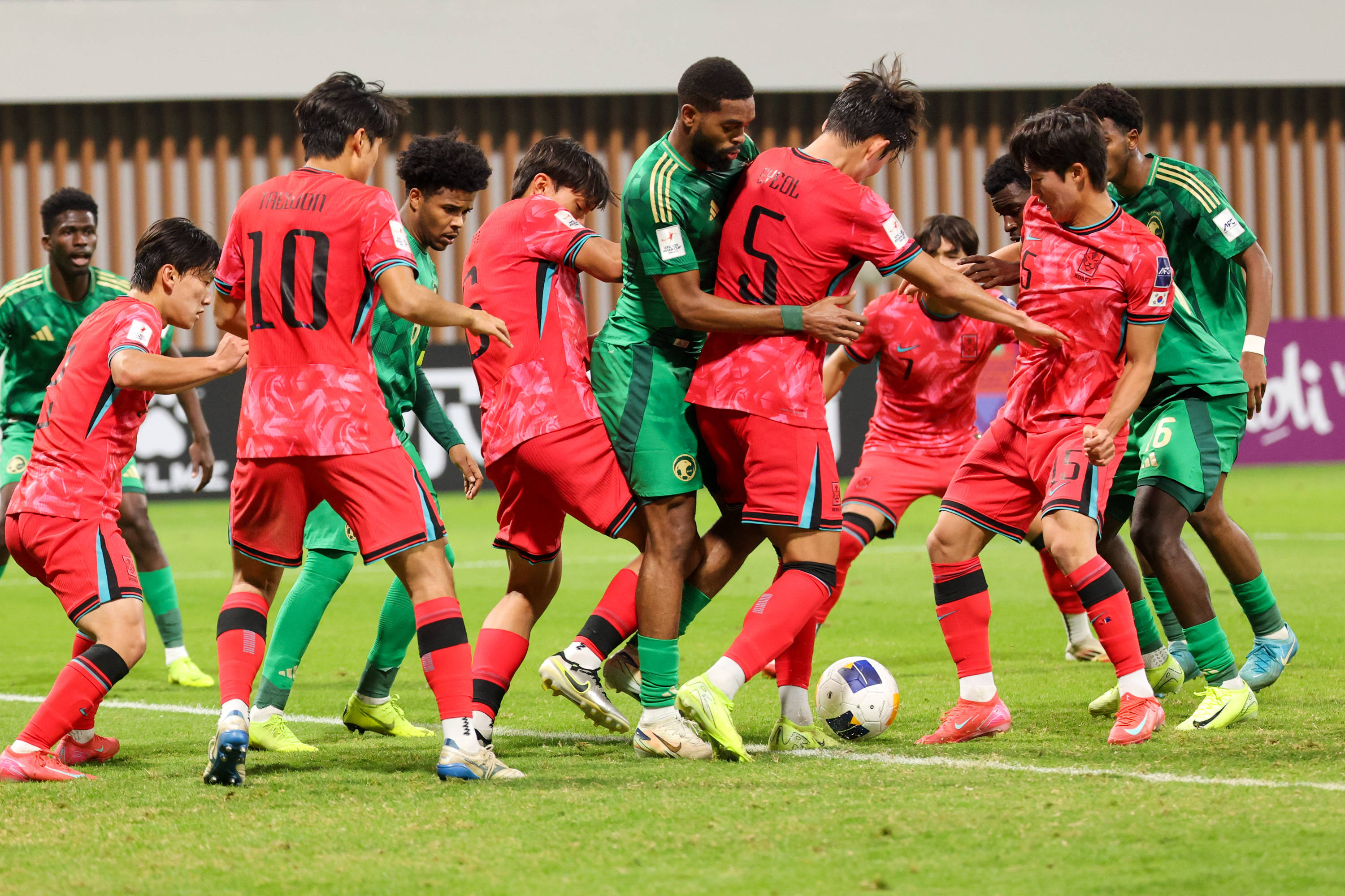 率先进行的一场半决赛在沙特队和韩国队之间展开,韩国队场上占优,但多次错失破门良机,比赛被拖入点球大战,在四分之一决赛中扑出中国队点球的沙特队门将尚基提延续神勇,扑出韩国队两个点球,马赫达维罚入制胜点球,帮助沙特队3-2胜出。
