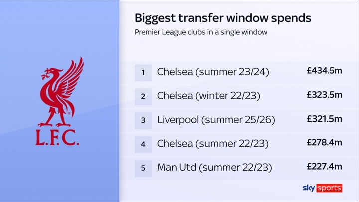 值得一提的是,利物浦曾1.1亿镑报价伊萨克但被拒绝,因此若利物浦能如愿签下伊萨克,那么他们将成为英超单个转会窗口支出最多的球队。