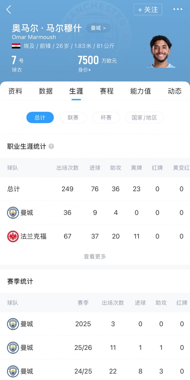 值得一提的是,曼城在冬窗签下马尔穆什时花费了7500万欧元,在上个赛季后半段,马尔穆什还有过几次高光表现,但本赛季球员表现下滑,仅在联赛杯中有一粒进球入账。